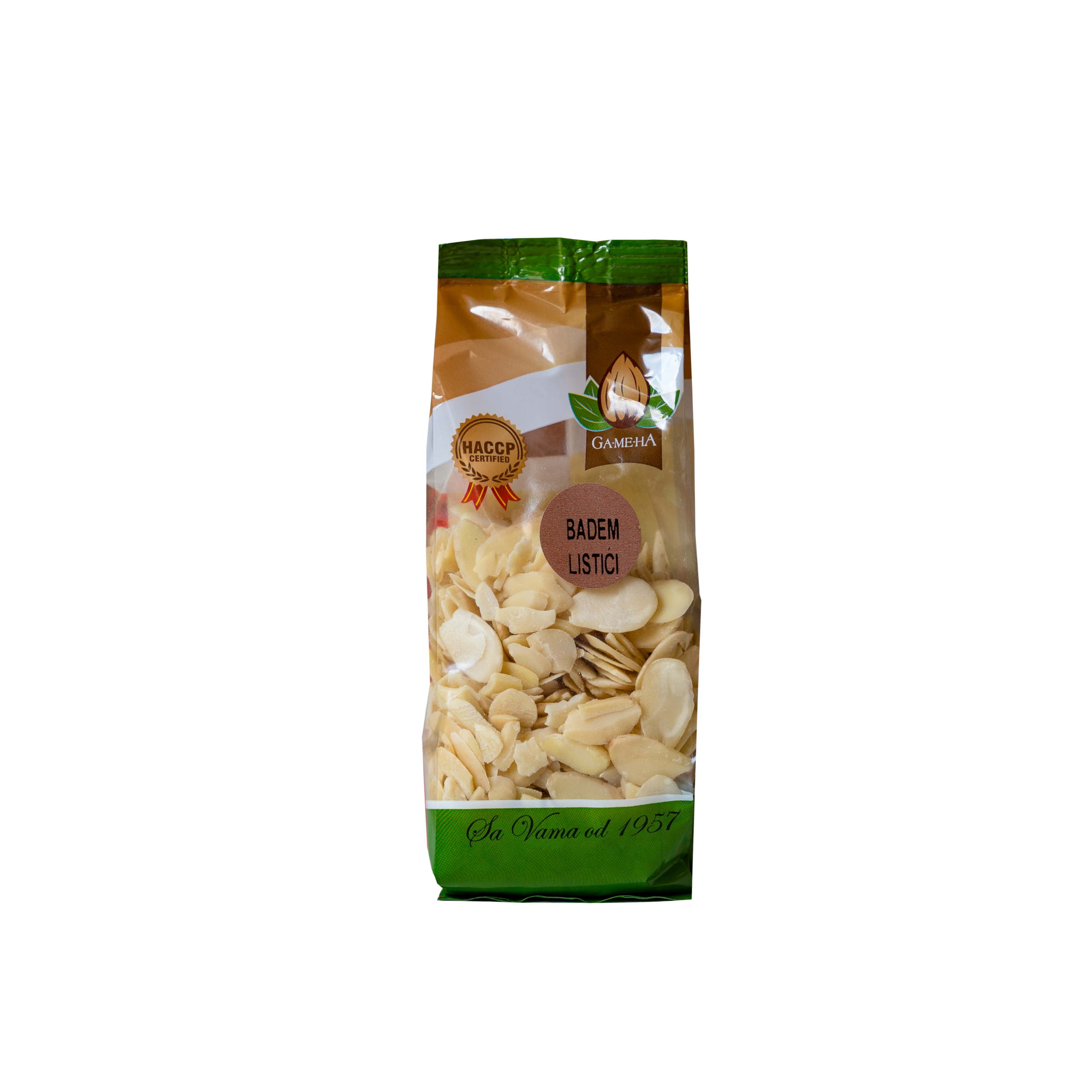 Badem u listićima je orašasti plod, tanko narezan i spreman za upotrebu. Bogat je zdravim masnoćama, biljnim proteinima, vitaminom E i mineralima, što ga čini izvrsnim izborom za zdravu i uravnoteženu ishranu. Obično se koristi kao dodatak muslijima, jogurtu, kolačima, pecivima, salatama ili za dekoraciju...
