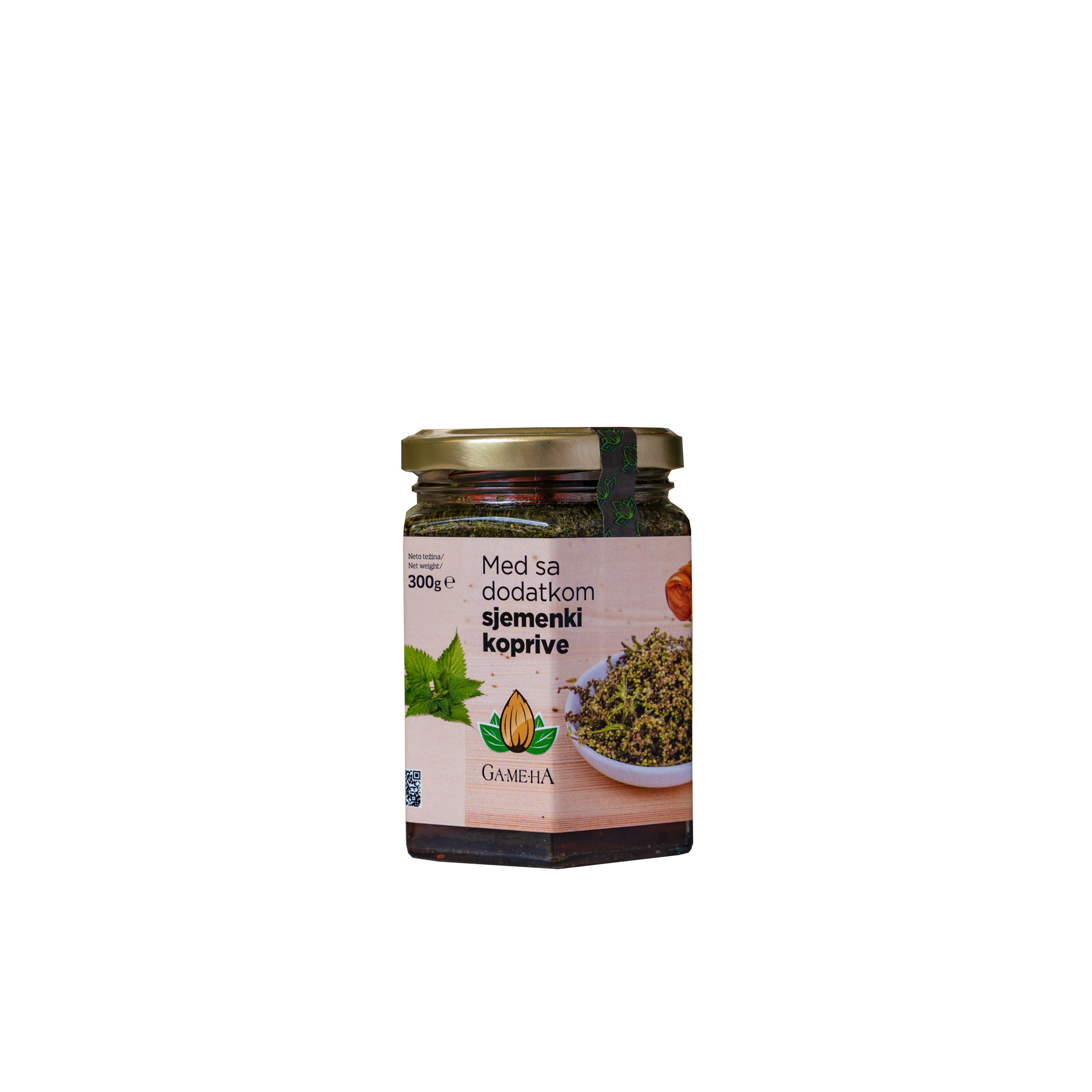Prirodna kombinacija kvalitetnog meda i sjemenki koprive, poznatih po svojim jačajućim svojstvima. Bogatog i prijatnog okusa, idealan za jačanje organizma i svakodnevnu upotrebu.
