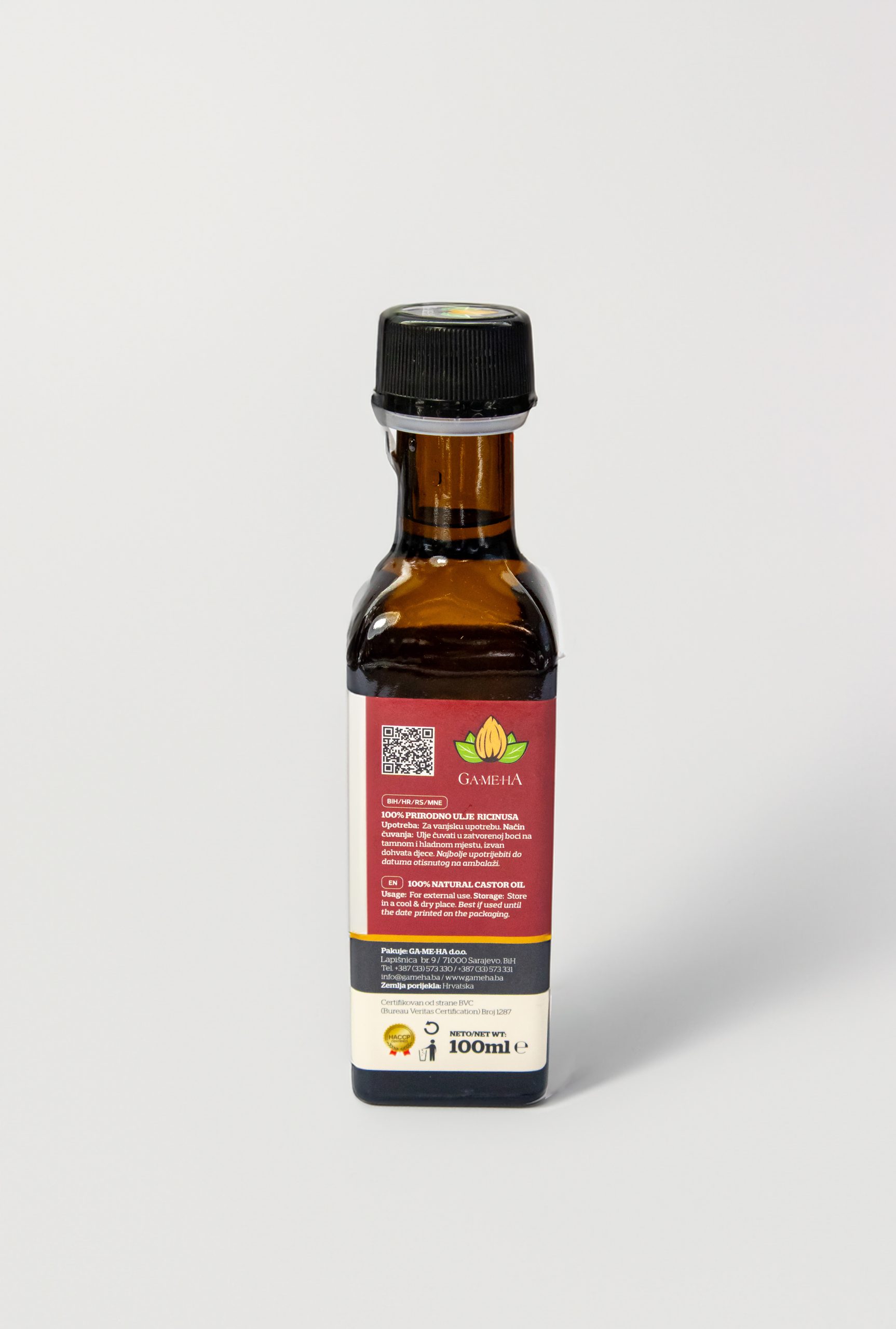 Prirodno hladno cijeđeno ulje ricinusa poznato po svojim hranjivim i njegujućim svojstvima. Idealno za njegu kože, kose i noktiju. Pomaže u hidrataciji i obnavljanju oštećene kože, a može se koristiti i za jačanje kose i noktiju.