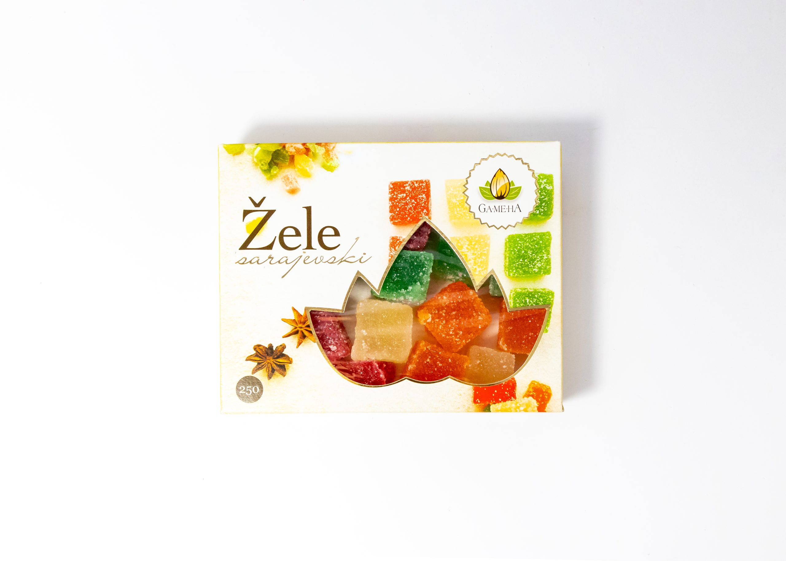 Žele sa aromama jagode, jabuke, limuna i narandže su sočne i šarene poslastice koje pružaju osvježavajući i sladak užitak u svakom zalogaju.